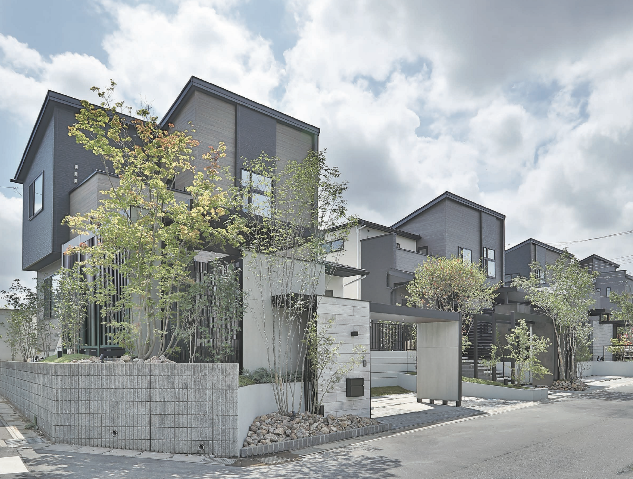 住宅の分譲計画では購入者と販売会社の想いと意図が均衡でなければ結果に結びつかないものである。エリア特徴やターゲット層などをマーケティングすることで企画提案する内容が明確になっていく。新たな時代背景に沿った最適提案はオープンスタイルのエクステリアでありながら魅了するアイデアを持つパーツデザインを最小要素で構成し様々な価値を最大限発揮することが目的とし素材を限りなく限定統一化し現在造作のモールディングパーツデザインで外部空間の隙間を抜い美しく演出した設計提案である。