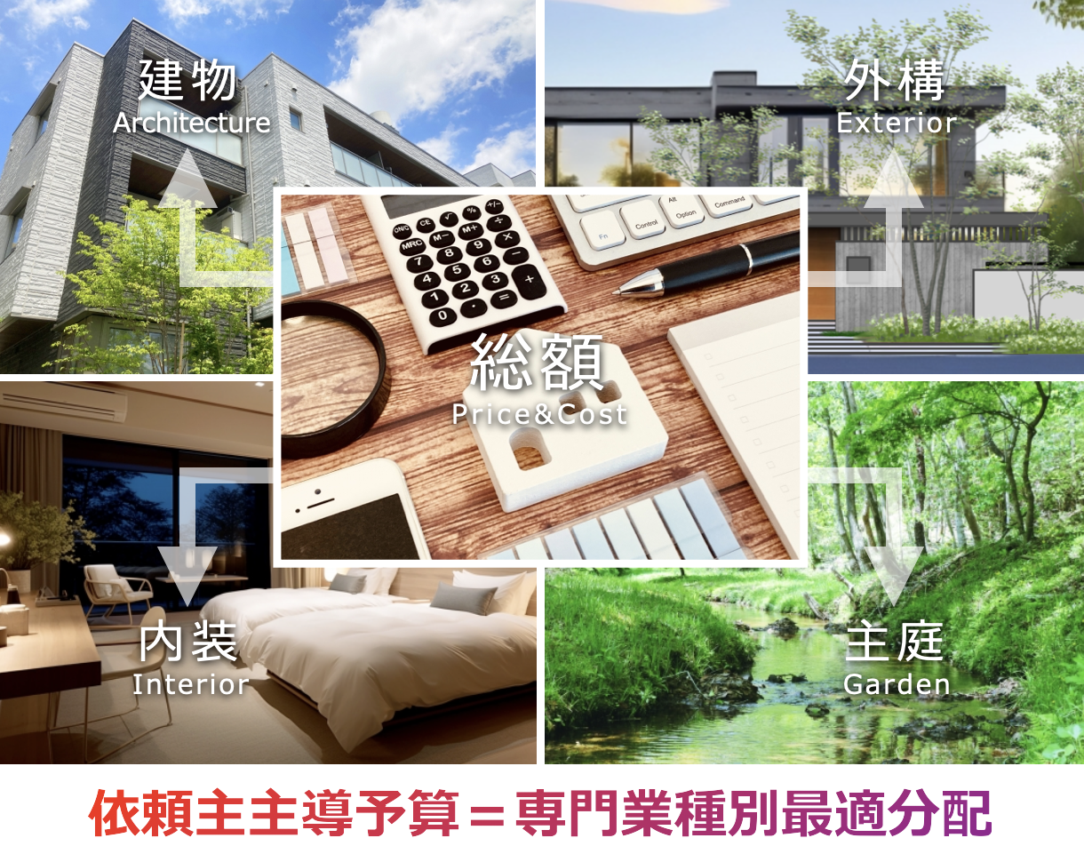 「依頼主の資産となる敷地全体を最善の策で企画構成する!」として考えれば自ずと答えは見つかるものです。住まい計画において建築計画が半分ほど進んだ上でエクステリア&ガーデンの外部空間設計に着手するほうがメリットが高いとされています。何故なら計画途中の段階であれば修正が効くということです。建築物を計画する際に外部空間との繋がりや利用価値を外から見直すことで良し悪しが把握出来るのです。玄関の位置やドアの向き、窓の種類、敷地空間の調整、そしてコストの事前把握は住まい計画にとって重要な役割となっていくでしょう。内装計画に合わせ主庭も同時進行出来れば窓先の景色に対して空間と予算も必要となることがハッキリします。それぞれの業種が共同連携し並行した計画提案が行えれば満足度の高い終着点が明らかに見えてくるものです。
