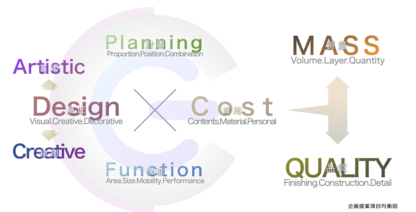 ※ミニマムデザインとは高い設計力でコストを抑えたボーダーライン上の最適化設計です。多工程ではコストは上がり削り過ぎれば安易計画に成り下がります。その境目を最小要素で美しいバランスとフォルムで成立させる高難易度のスキルが求められる手法です。