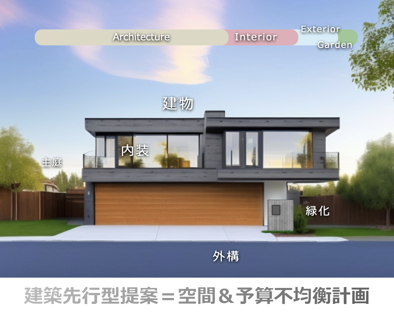 「安易なものには理由がある!」と言われています。新築計画では主に住宅主導型の一過性提案が一般的です。そのため建物と共に計画が進められるメリットがあります。しかし建築→内装→外構という順が主流であることから考案するまでの時間が短く安易な計画となりやすいことから「余った予算で当てはめる」という懸念があります。主導権を依頼先にお任せすることは楽ですが理想と現実の差を自ら操作出来ない不満度は残りやすいでしょう。また、価格を抑えるために”手抜きした提案”には注意が必要です。"価格抑制"には見えない箇所に影響するコスパであったり品質や経年劣化という将来性や人的要因の対応力や施工力に差が出ることに影響するケースもあります。単に価格が安いからという表面上に惑わされることなく正しい内容を提示してくれる会社や設計者を見極めることが大切です。