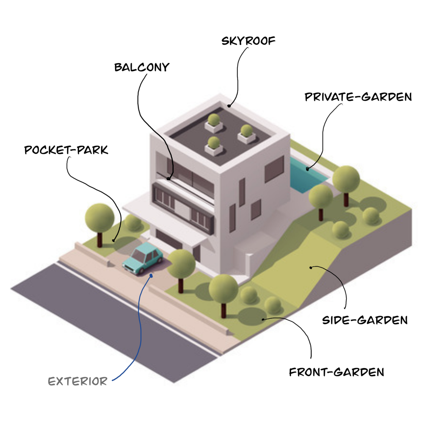 ・SIDE-GARDEN:敷地境界と建築に挟まれた側庭空間