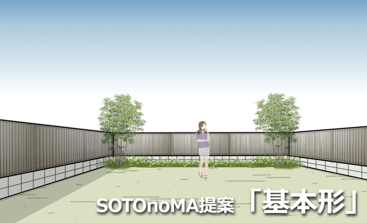 「GARDEN-DESIGN」と聞いて多くの人は樹木や草花を主体にした眺め見るアート性の高い専用庭を思い描くだろう。古くは住人価値を表しゆとりある敷地内に風景を移し魅せ有権者や成功者の証として大変高価で貴重な要素であった。時代の変化とともに一般的に受け入れられ坪庭や側庭など限られた空間に屋外オブジェとして飾られるようになっていった。しかしライフスタイルの変化とともに外の暮らしに憧れが高くなり利用価値のある庭造りの要望に合わせ自然環境に寄り添い滞在する提案『SOTOnoMA』として新時代の住環境に似合う形に注目し庭提案に加わると言われている。