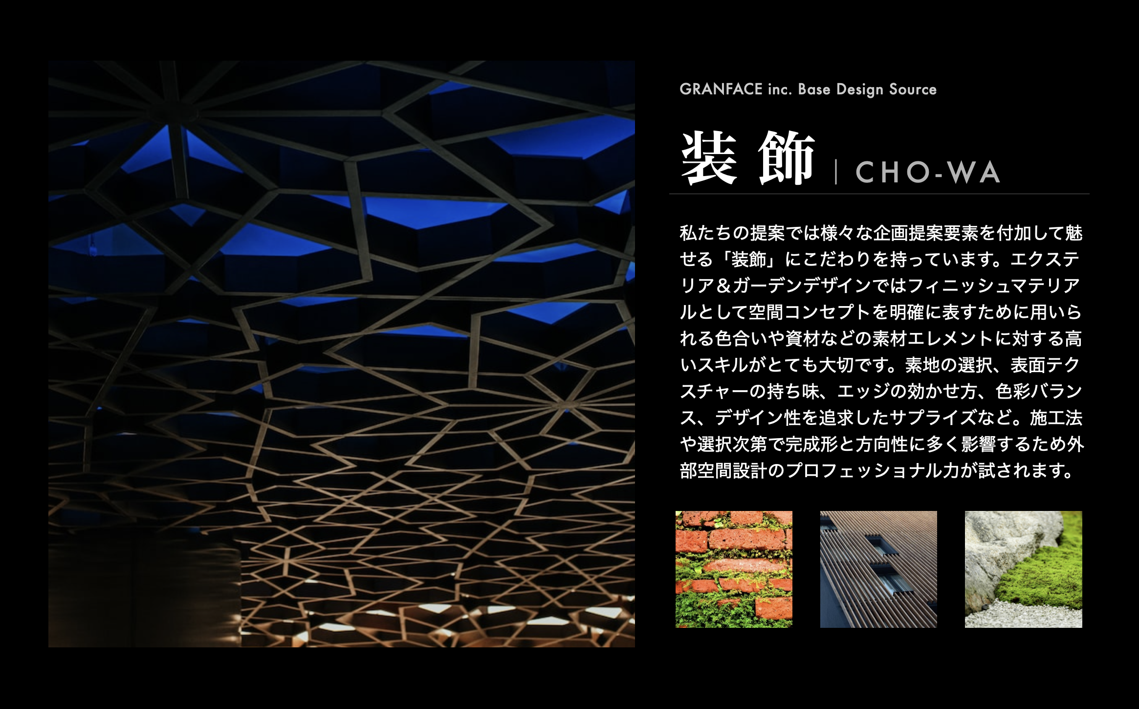 GRANFACE inc.は 本物の価値を纏う外部空間を 総合的にプロデュースします